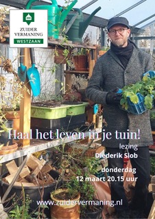 Toegang: €2,50, €7,50 of €12,50 Betaal wat u kunt. Koop een ticket via zuidervermaning.nl/12-mrt-2026-lezing-over-planten-door-diederik-slob