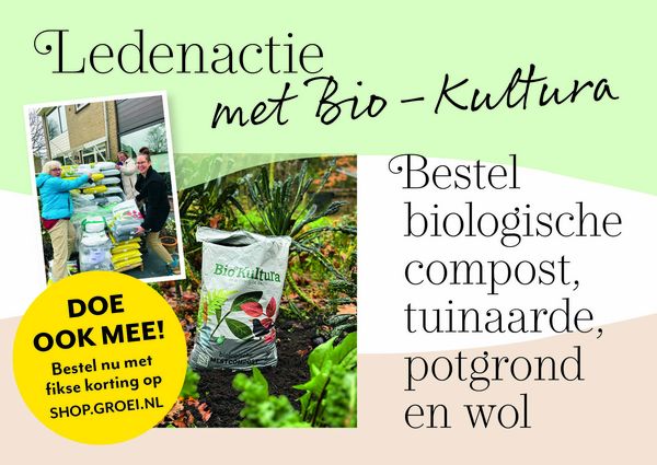 Goed nieuws voor alle Groei & Bloei-leden: dit najaar start weer een nieuwe ronde van het Groei & Bloei Verenigingsvoordeel! Leden kunnen via de webshop profiteren van tot wel 20% korting op duurzame, biologische bodemverbeteraars van Bio Kultura zoals compost, tuinaarde en kleimineralen.